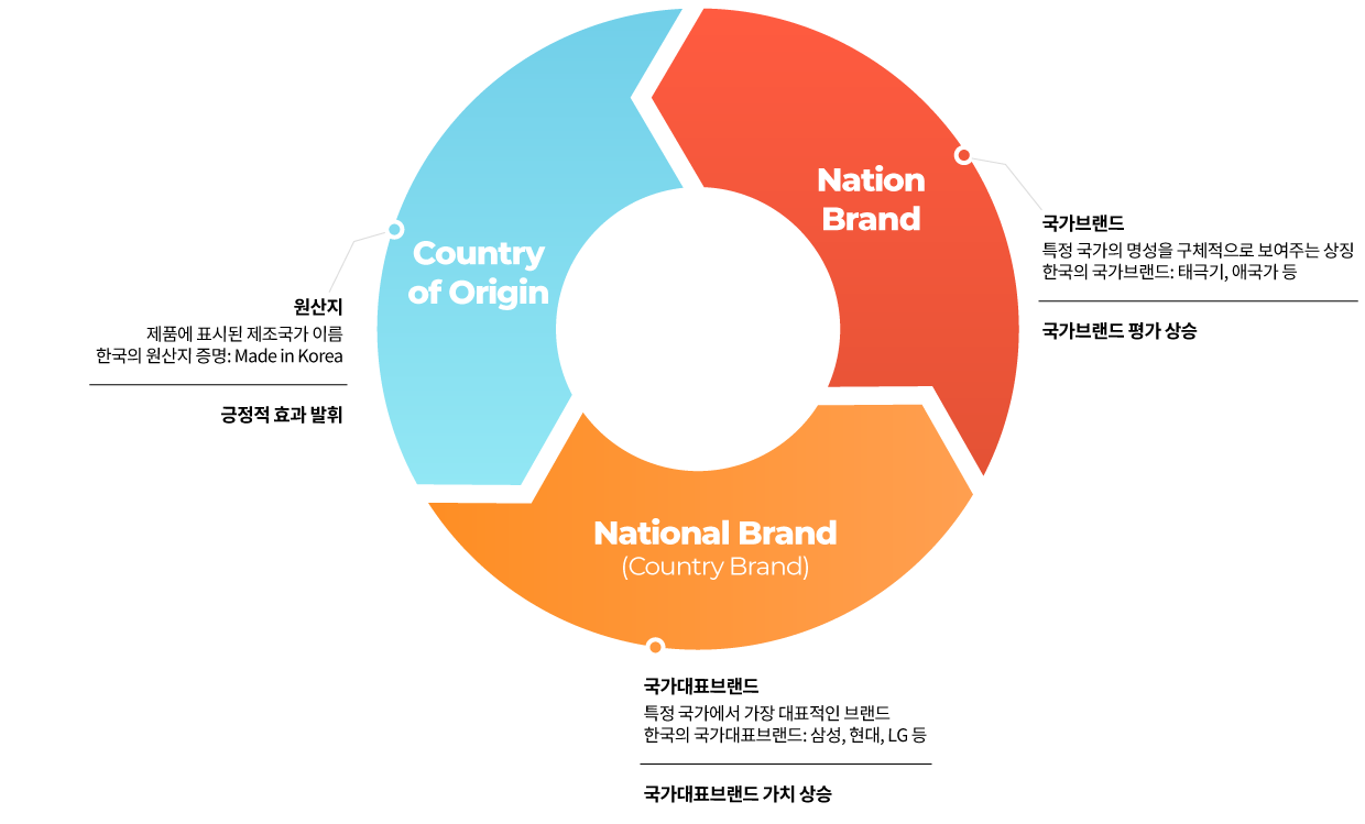 국가브랜드는 사람들로 하여금 특정 국가 또는 특정 국가의 집단, 제품, 서비스를 식별하고 다른 국가와 구별하도록 의도된 이름, 용어, 기호, 심벌, 디자인 또는 이것들의 조합이라고 할 수 있습니다. 이러한 국가브랜드는 기업이나 제품 브랜드와는 달리 한 국가의 이미지, 신뢰도, 호의도 등 모든 것을 대변하는 종합적 가치를 지니며, 경제, 사회, 정치, 문화 등 다양한 측면에서 직접 또는 간접적으로 국가경쟁력 향상에 영향을 미치고 있습니다.